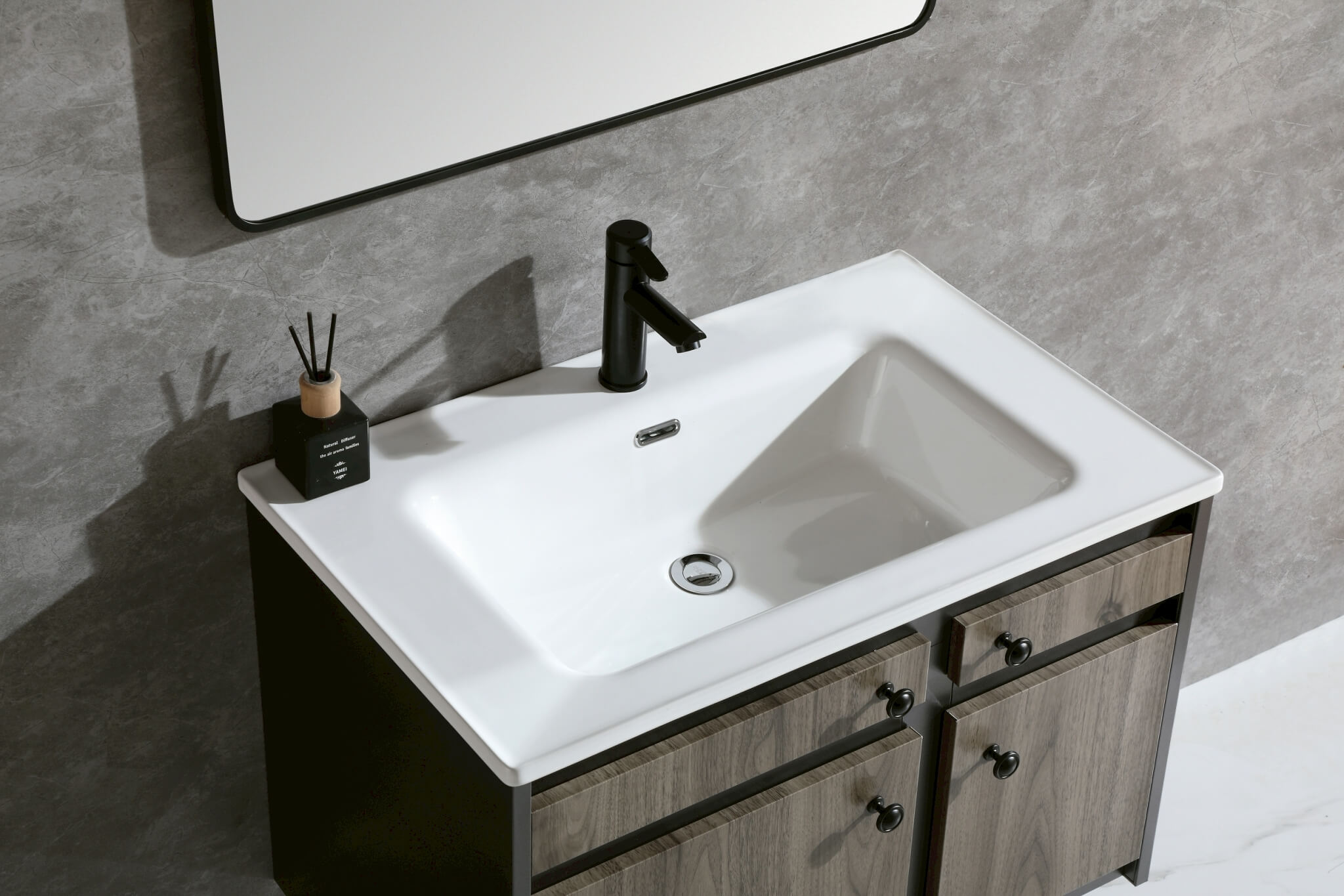 不鏽鋼浴櫃尺寸:80X50X50cm (陶瓷盆檯面) 售價:$10000元 不鏽鋼浴櫃尺寸:80X50X50cm (岩板檯面) 亮光亞曼尼灰 義大利淺灰 寒江雪 雪山石 售價:$13000元 ※備註:現貨