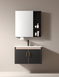 不鏽鋼鏡櫃尺寸:80X80X15cm 售價:$7500元 不鏽鋼浴櫃尺寸:80X50X50cm (陶瓷盆檯面) 售價:$10500元 不鏽鋼浴櫃尺寸:80X50X50cm (岩板檯面) 亮光亞曼尼灰 義大利淺灰 寒江雪 雪山石 售價:$13500元 ※備註:現貨