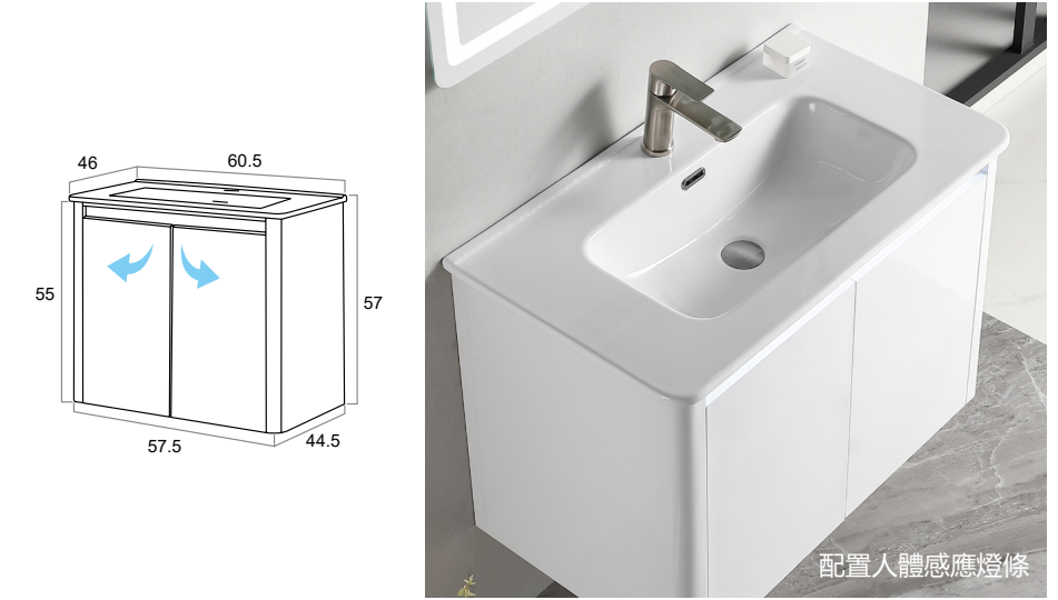 60CM-不鏽鋼浴櫃/不含龍頭