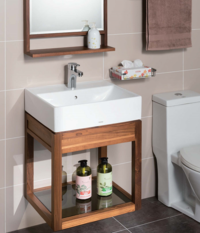 簡約造型,結構以柚木及栓木製作,下置物平台為8mm強化茶玻